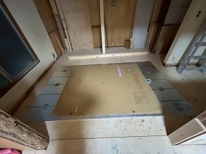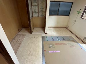 1階洋室に床暖房を設置!合板で段差をなくします。