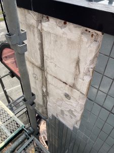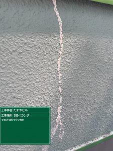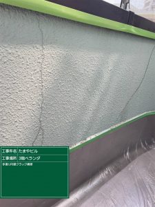 ベランダの壁のクラック(ひび割れ)を補修して塗装していきます