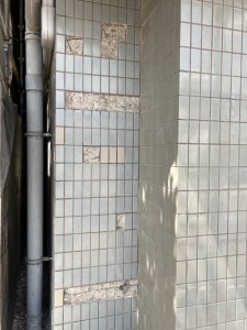 タイルが浮いていたりクラック(ヒビ割れ)の部分を、切断して剥がします