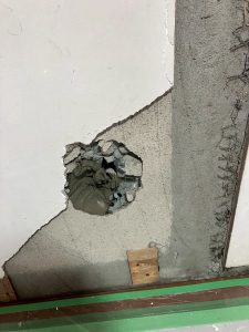 壁の中の石膏ボードが割れていたのでモルタル補修を行いました。