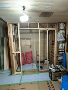 今回は間取りもガラリと変更したので、壁を造作する工事をたくさん行いました。